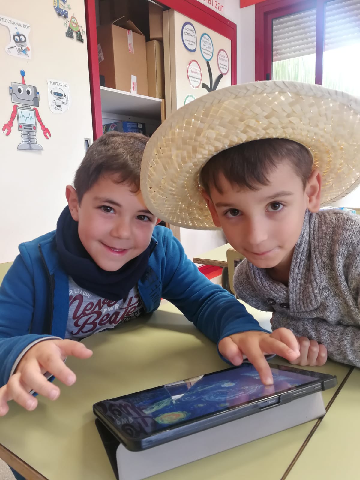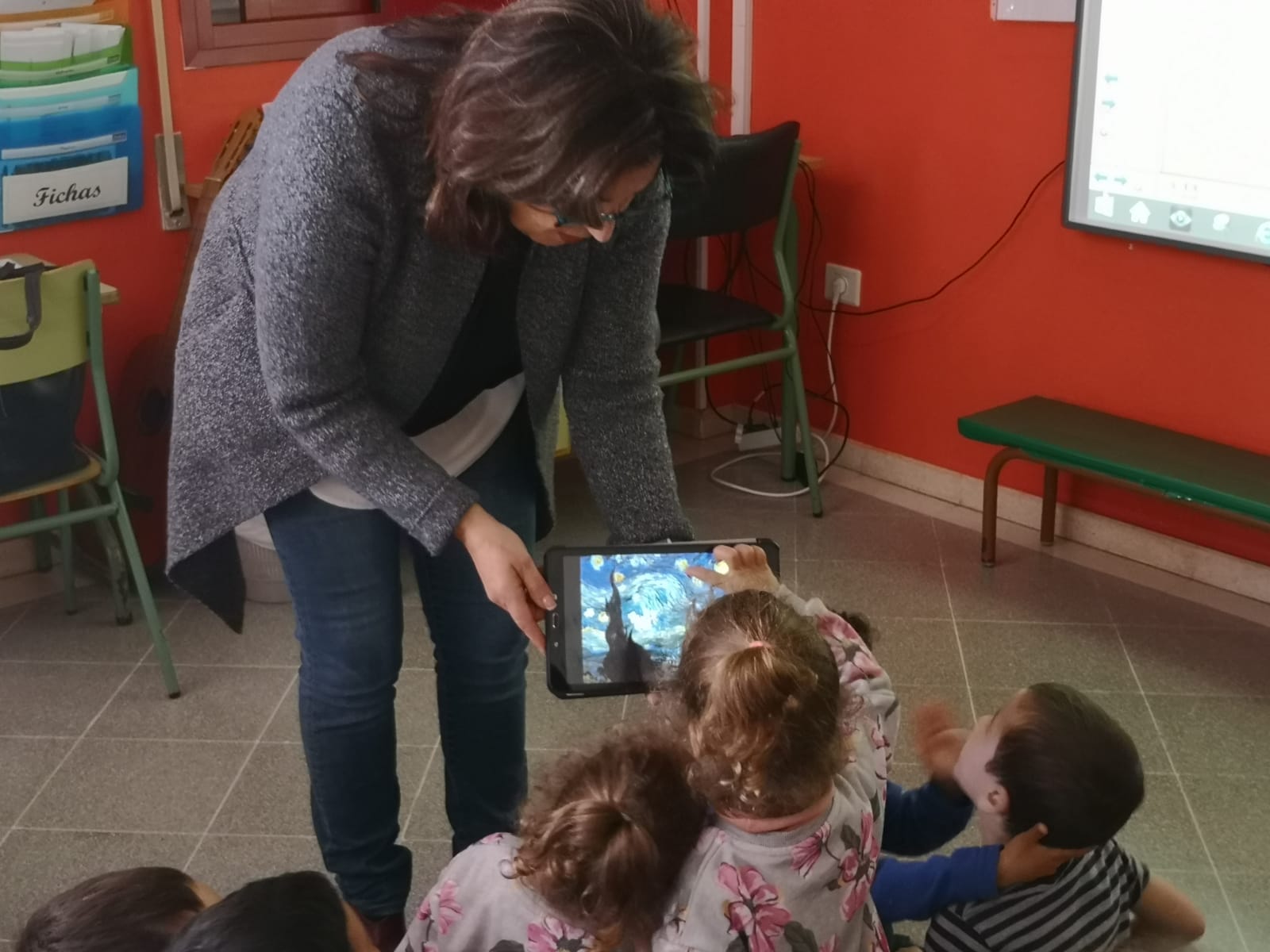 Con las tablets App starry night interactive jugamos con la noche estrellada ( pasando el dedo se mueve la imagen)