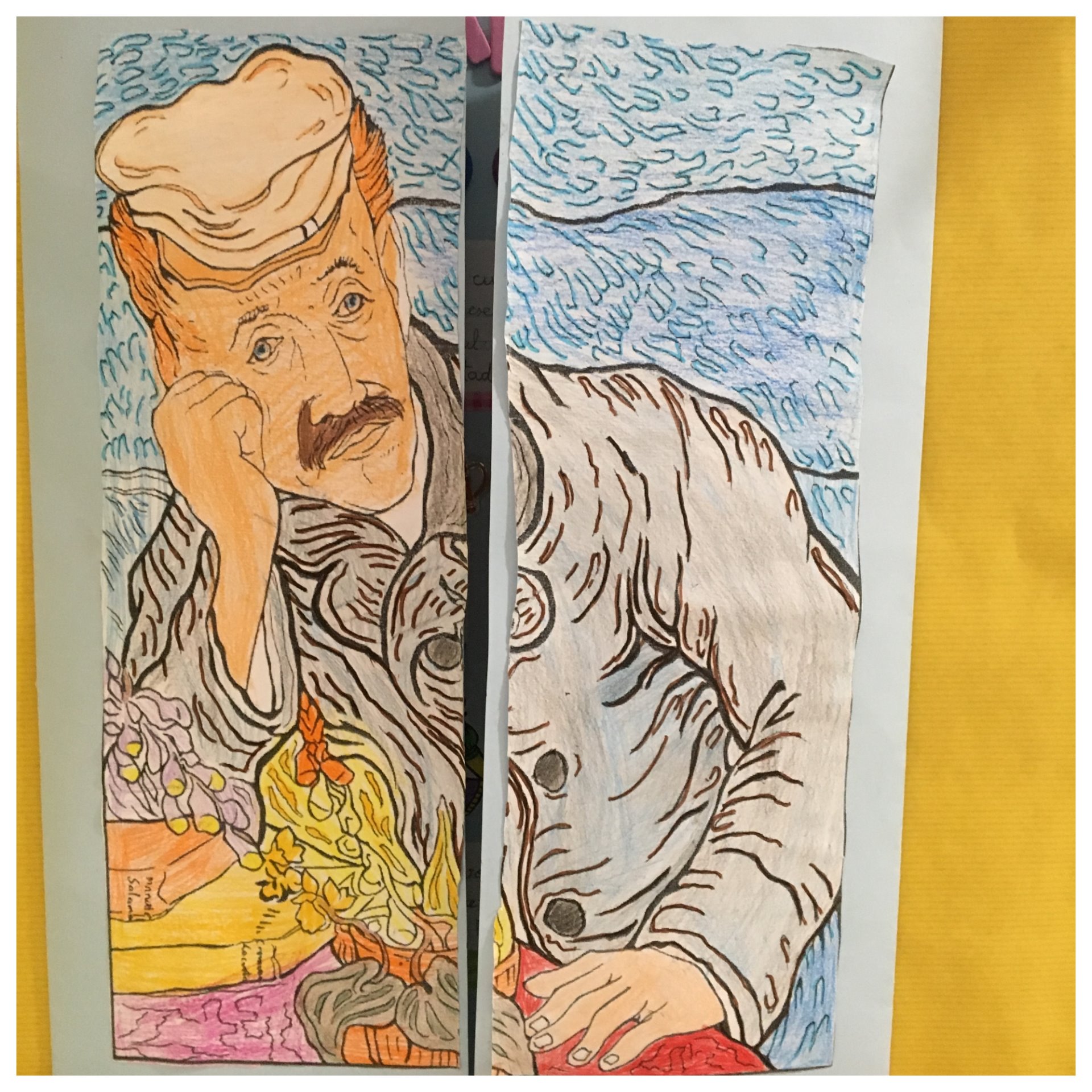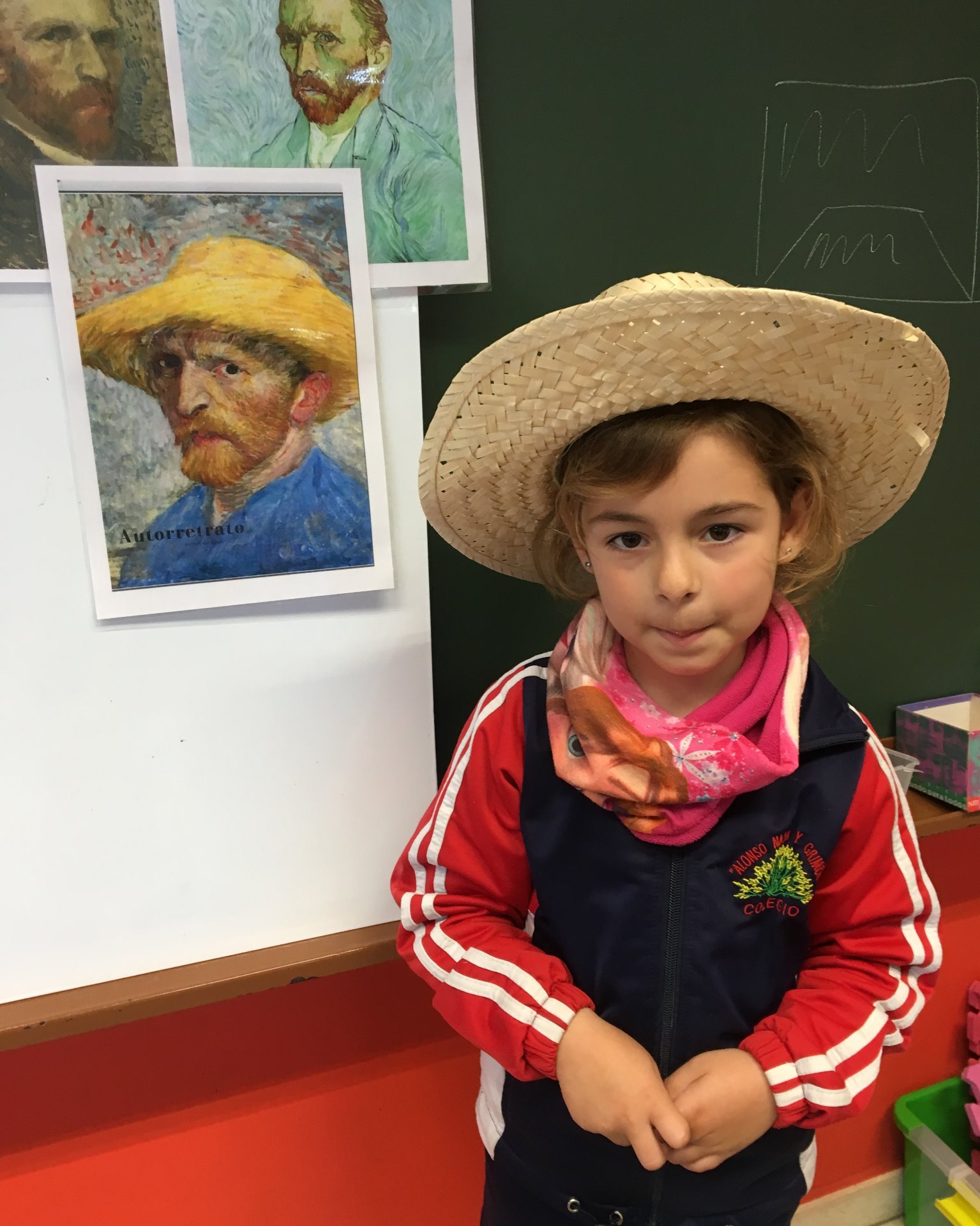 - Mesa de luz: calco de autorretratos de van Gogh en papel vegetal y luego colorear.