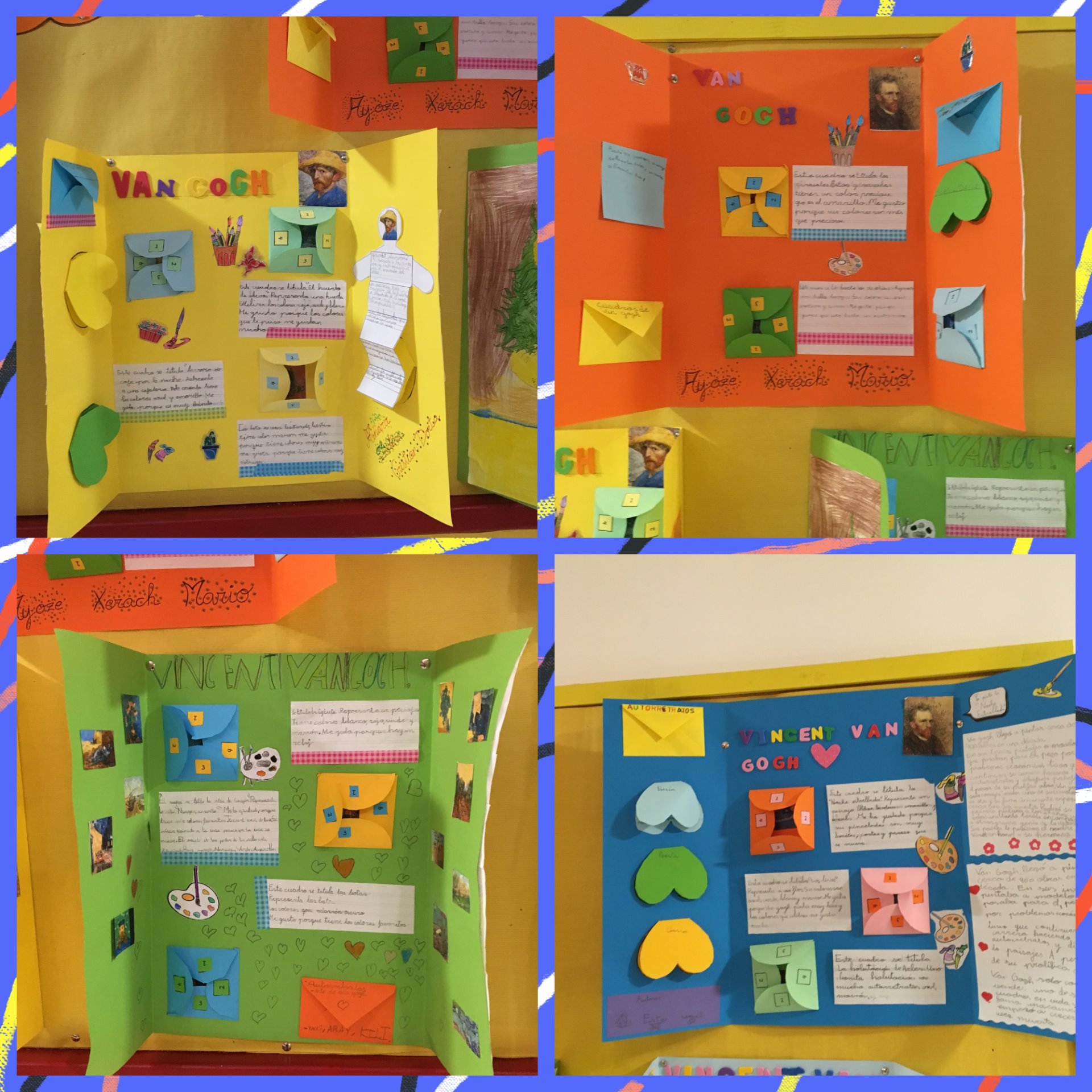 El alumnado de segundo se organizó en equipos cooperativos . Investigaron en el aula Medusa la vida y las obras de Van Gogh y luego trasladaron esa información a los lapbooks. Desde aquí les quiero felicitar no solo por el trabajo realizado sino por lo bien que trabajaron en equipo disfrutando muchísimo.