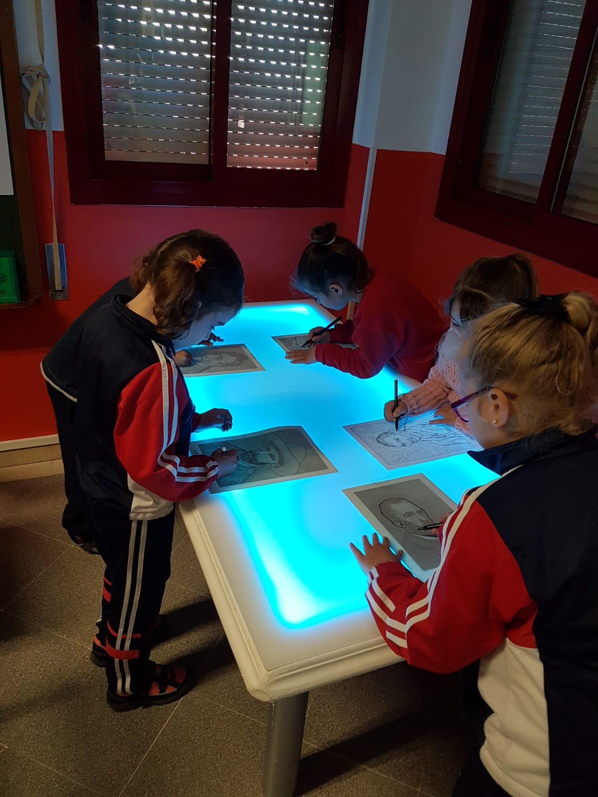 Las niñas y niños de Infantil de 5 años participaron en todas las actividades propuestas desde el aula Impulsa finalizando con el trabajo del autoretrato de Van Gogh en papel vegetal, primero en la mesa de luz y luego lo colorearon .